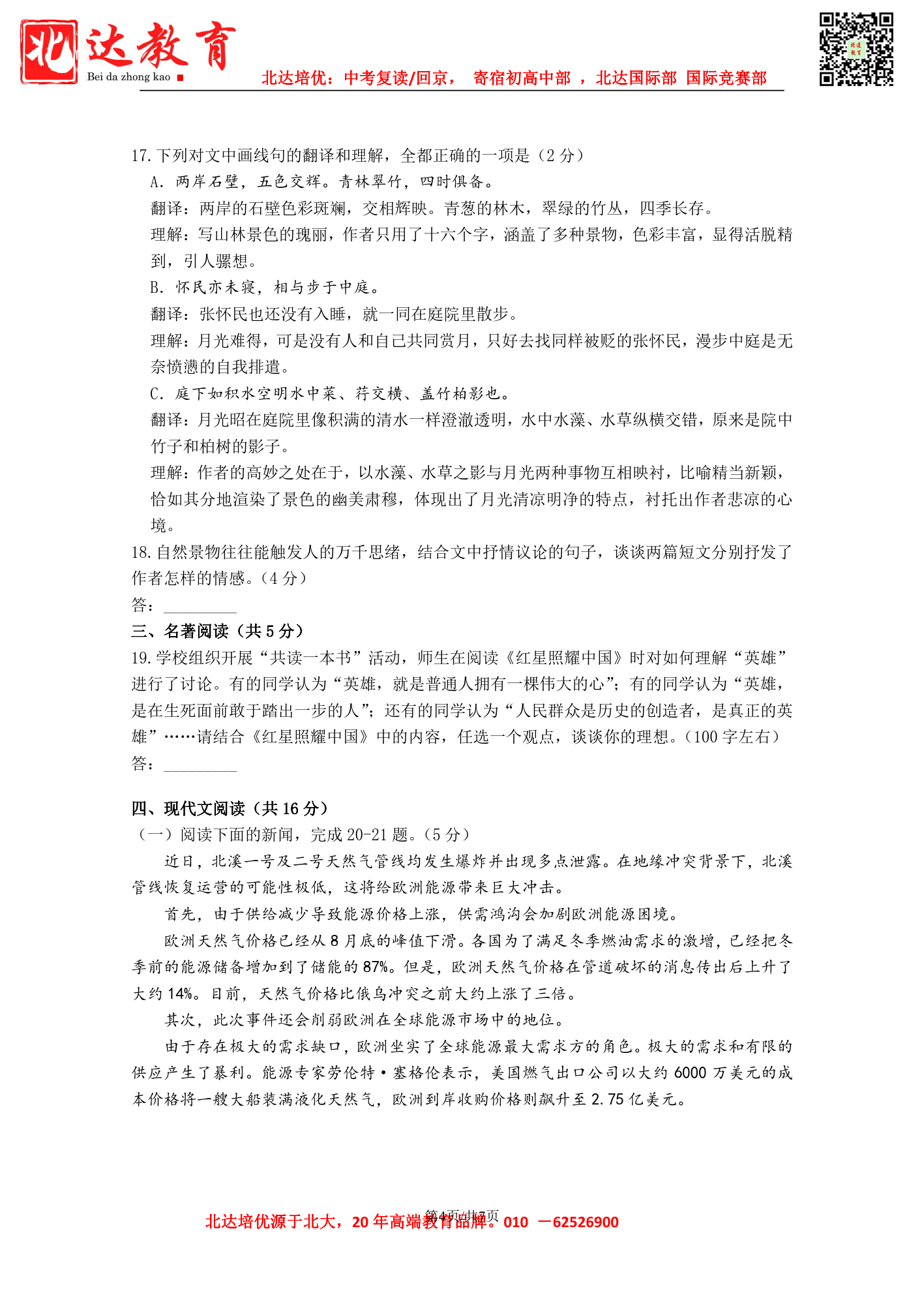 2022-2023学年北大附中初二(上)语文考试已结束,admw360中考网第一时间为大家整理了试卷,分享给各位小伙伴。