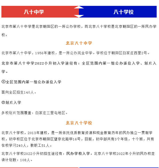 北京有很多学校名字相近或者相似,很多都让人傻傻分不清!今天admw360中考网就为大家特别整理了80、人大附、101、陈经纶中学等21所易混初中校区分信息,主要涉及学校的办学性质、招生途径等信息,希望能给到2023年小升初家长参考和帮助!