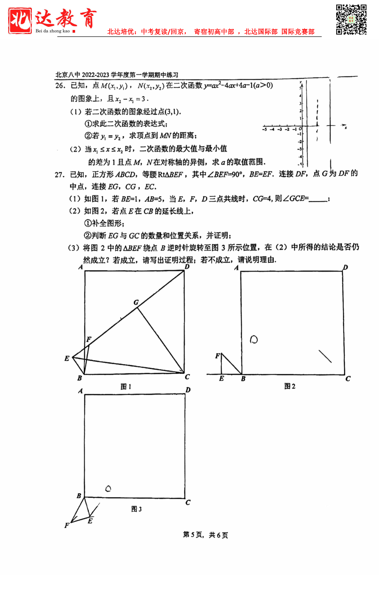 今天,admw360中考网为大家整理了2022-2023学年北京八中初三上期中数学试题,分享给大家。