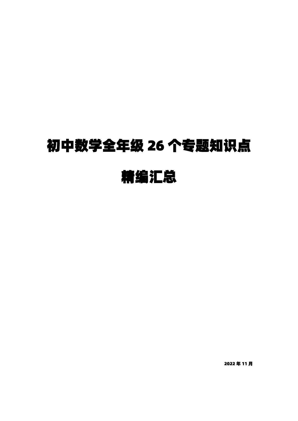 下载链接:初中数学全年级26个专题知识点精编汇总