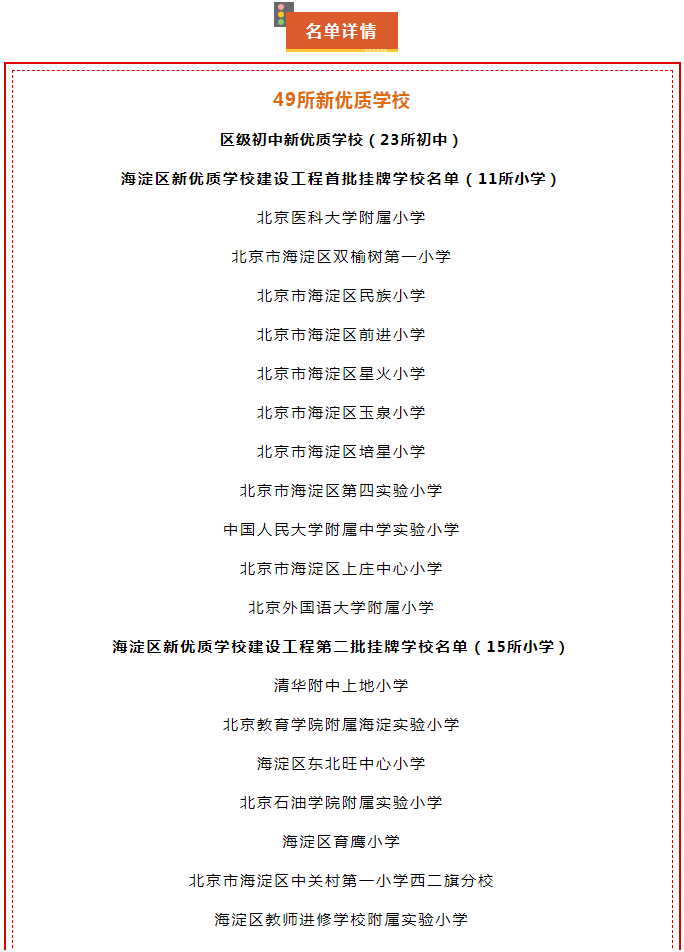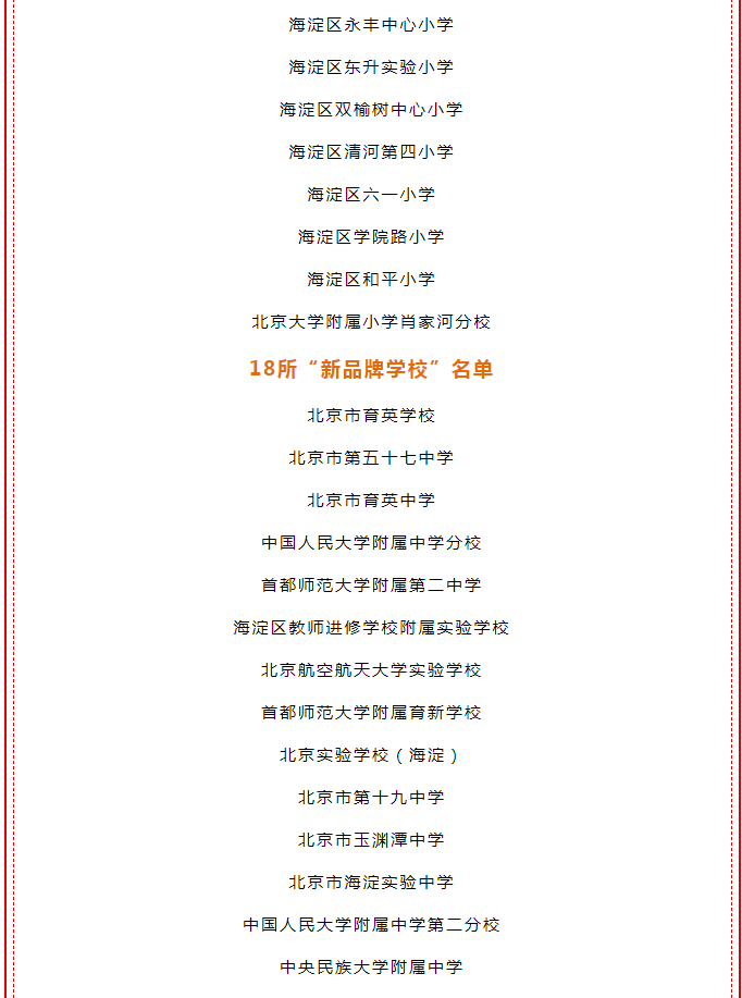 近日,北京海淀区49所“新优质学校”和18所“新品牌学校”名单最新发布!admw360中考网第一时间为大家整理了内容详情,一起来看: