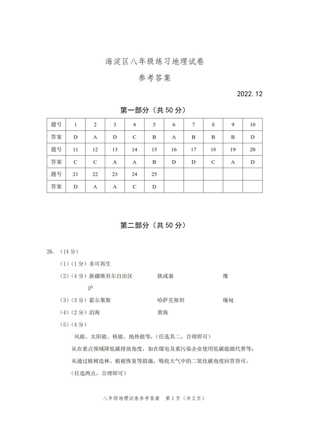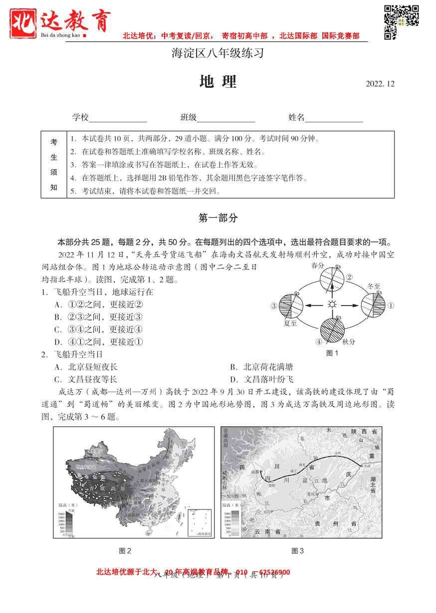 2022-2023学年北京海淀区初二上期末地理考试已结束,admw360中考网第一时间 为大家整理了相关试题及答案,分享给大家。