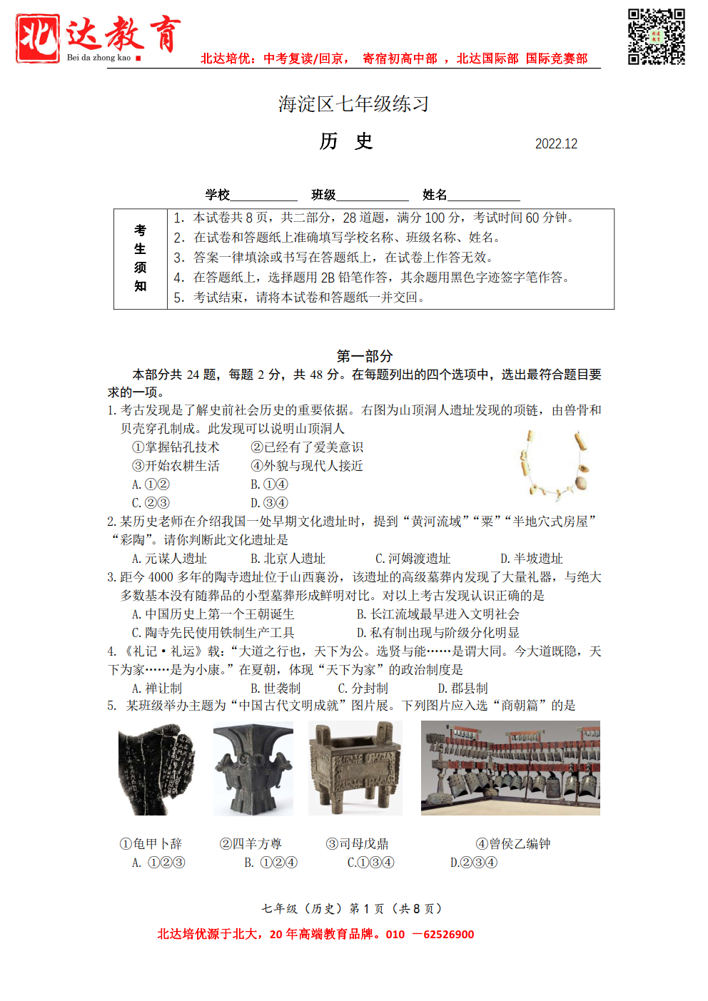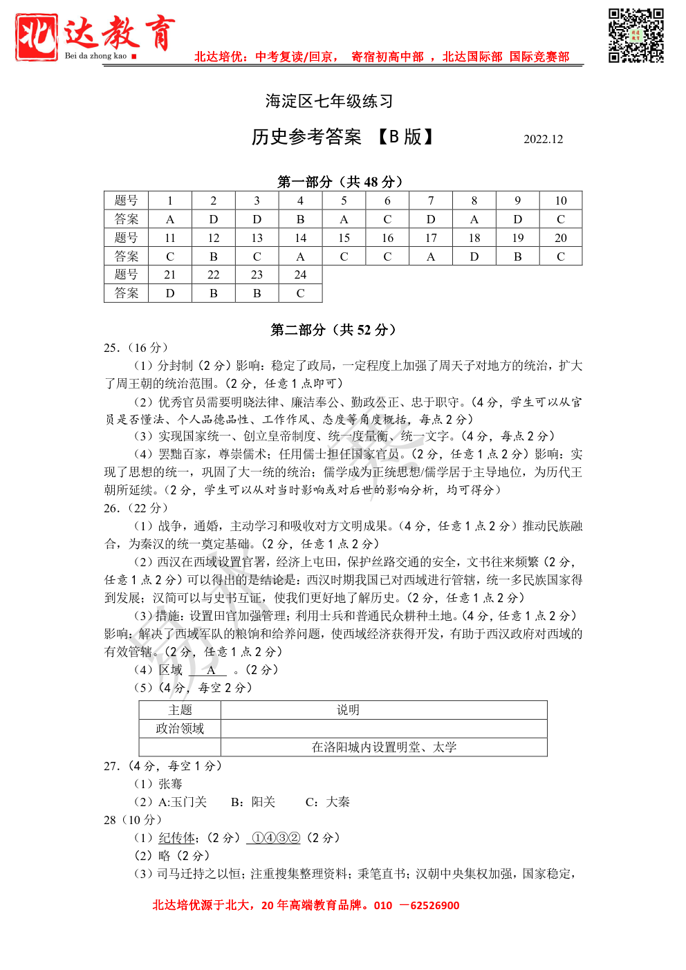 2022-2023学年北京海淀区初一上期末历史考试已结束,admw360中考网第一时间 为大家整理了相关试题及答案,分享给大家。
