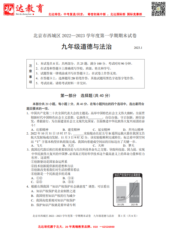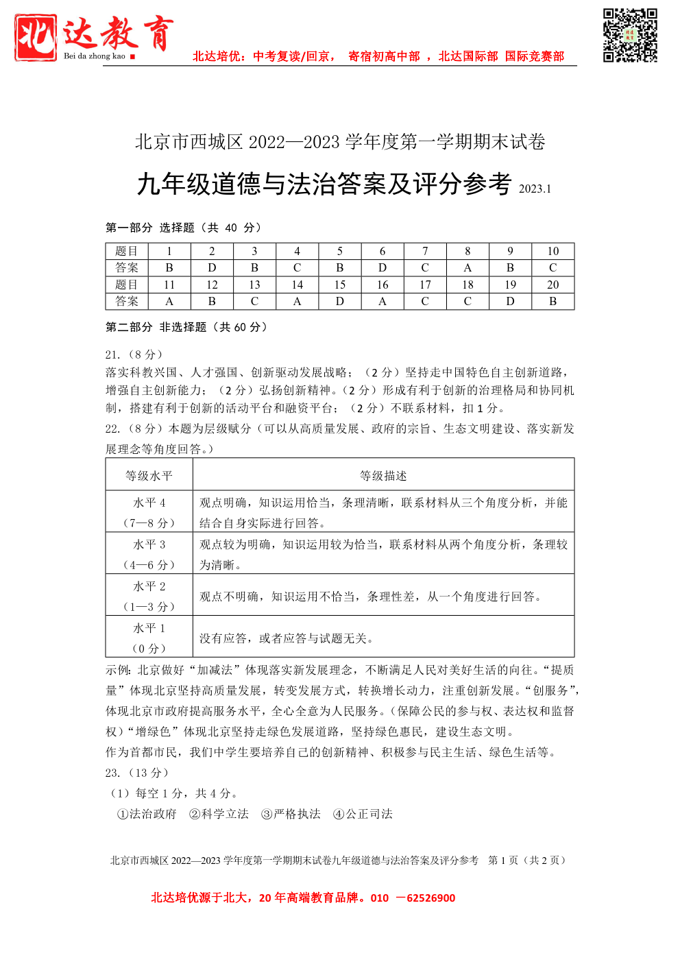 2022-2023学年北京西城区初三上期末道法考试已结束,admw360中考网第一时间 为大家整理了相关试题及答案,分享给大家。