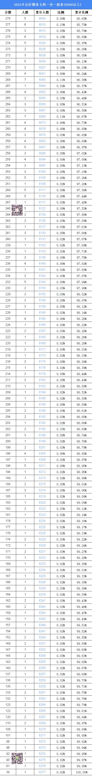 2023丰台初三期末(上)七科一分一段表(6000名以上)网传版