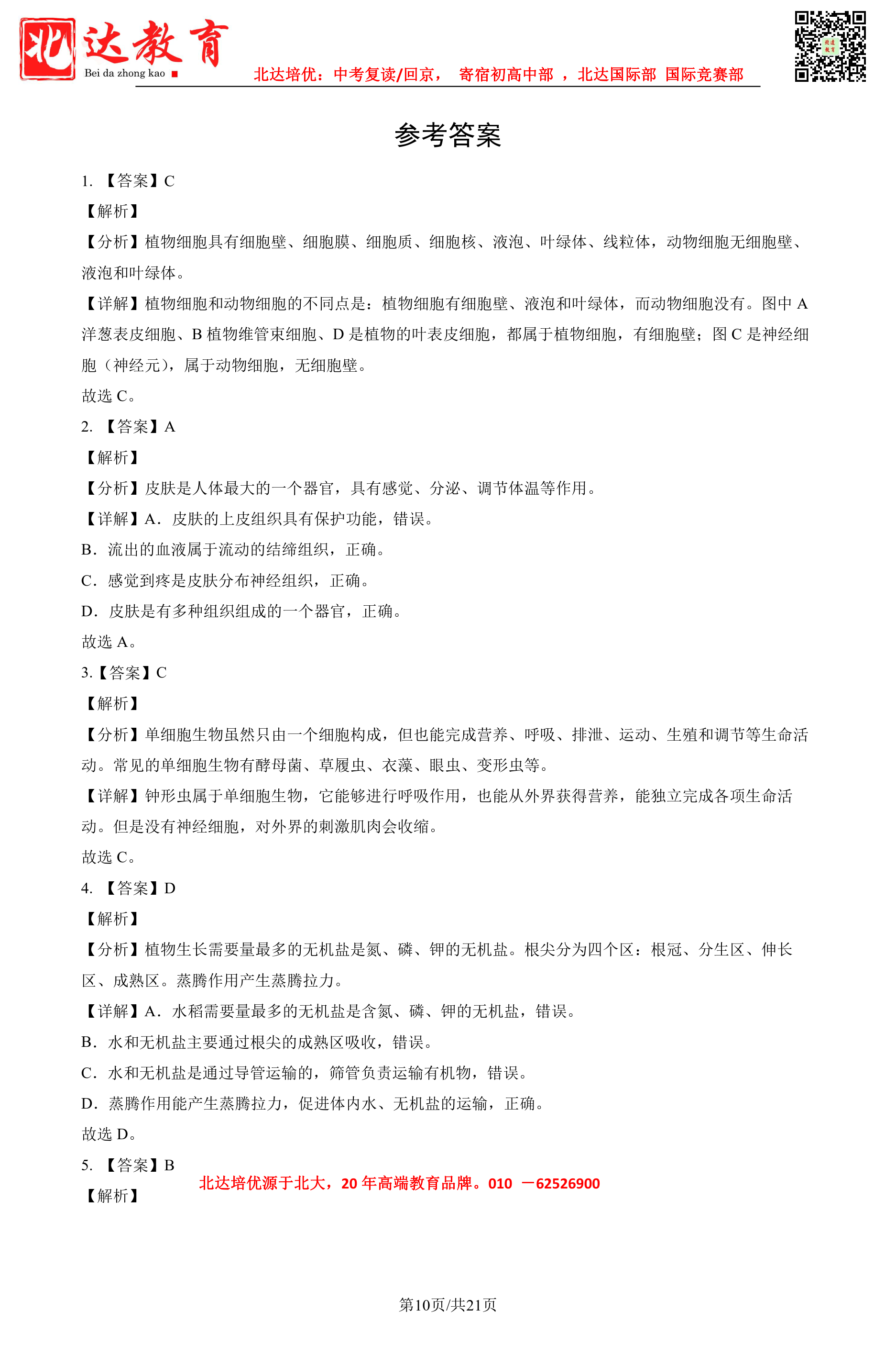 2022-2023学年北京石景山区初二上期末生物考试已结束,admw360中考网第一时间 为大家整理了相关试题及答案,分享给大家。