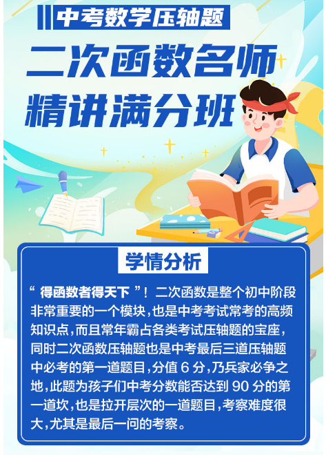 二次函数作为中考压轴题型考查,重要性不言而喻,期末、模考、中考均以选择最后一题和试卷最后一题考查,大家务必掌握住!
