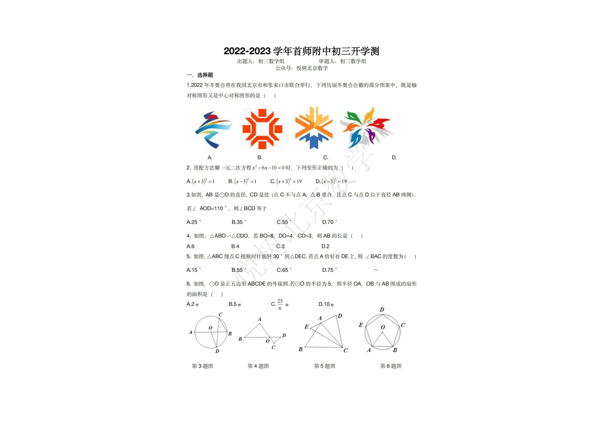 2022-2023学年北京各区初三上期末试卷&答案汇总