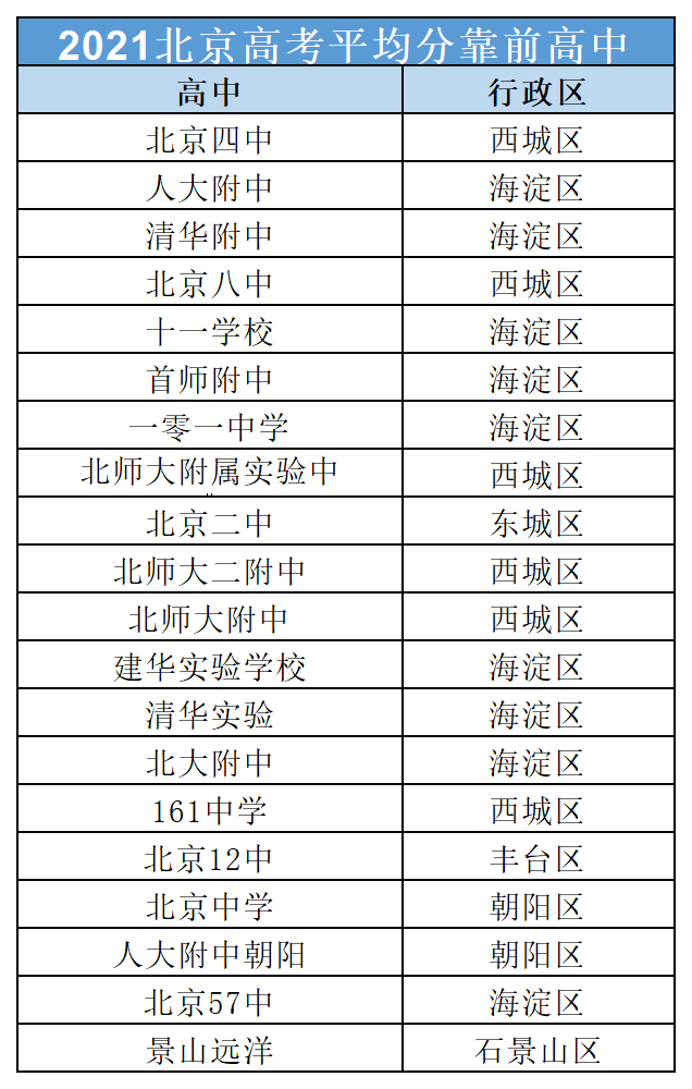 2.以上数据统计的是2021年及2022年北京高考平均分靠前的学校。