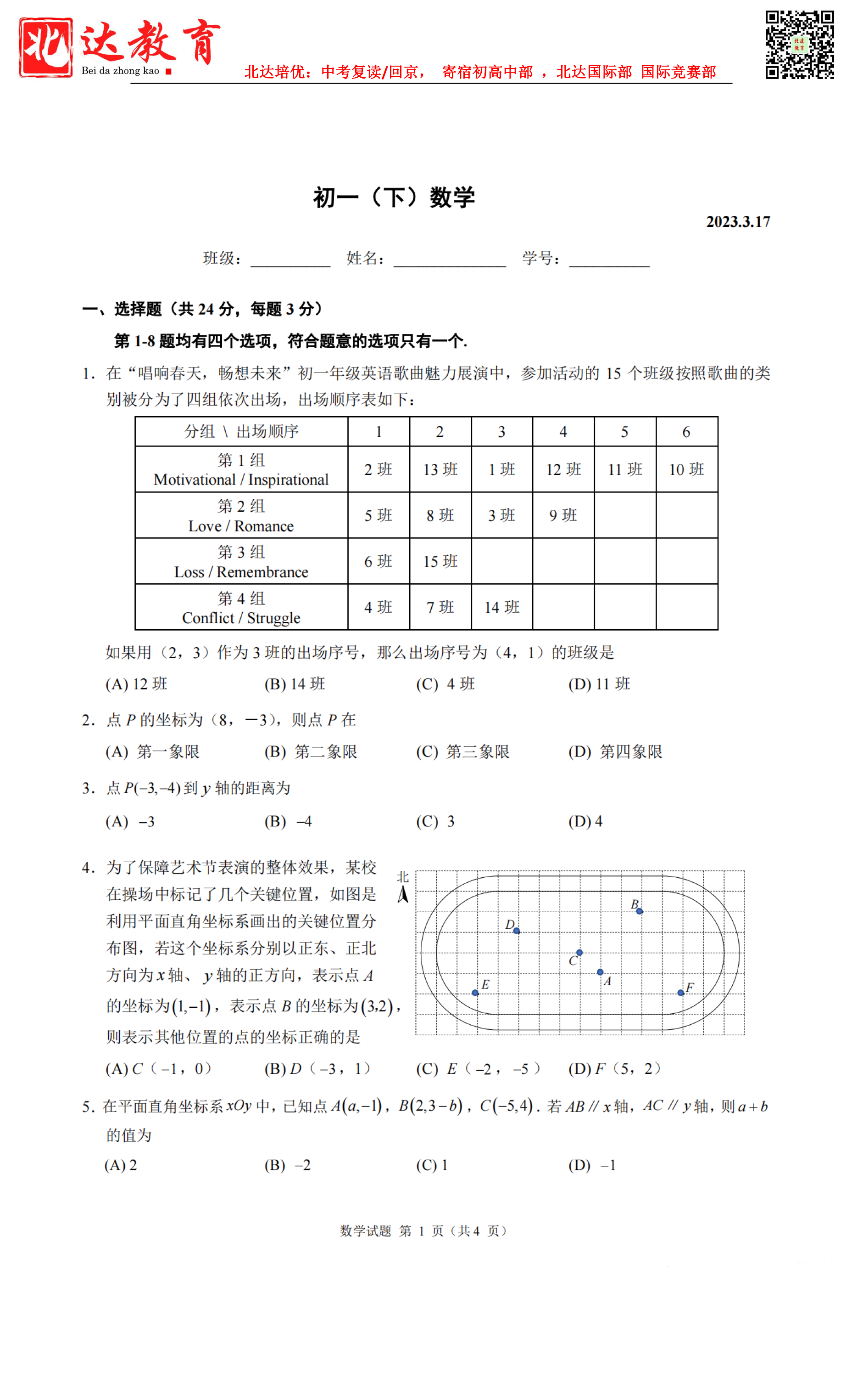 admw360中考网整理了2022-2023学年北京大学附中本部七年级下3月考数学试题,分享给大家。需要的同学赶紧下载练习起来吧。