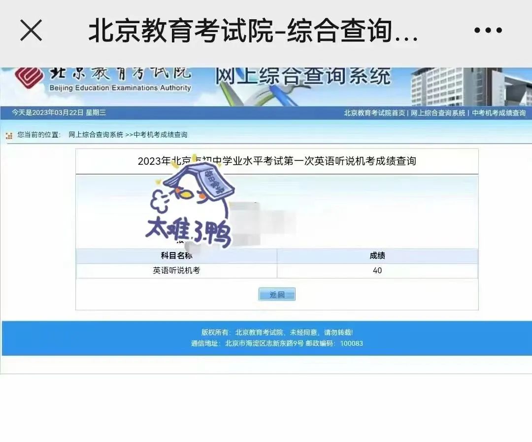 昨日,2023北京中考第一次英语听说考查询系统已经开通!相信大家都已经查到了分数,大部分孩子考的还是不错的,在这里admw360教研组先向这些取得满分的同学们表示祝贺,没有取得满分的同学也别着急,继续努力,争取第二次考试取得满分。