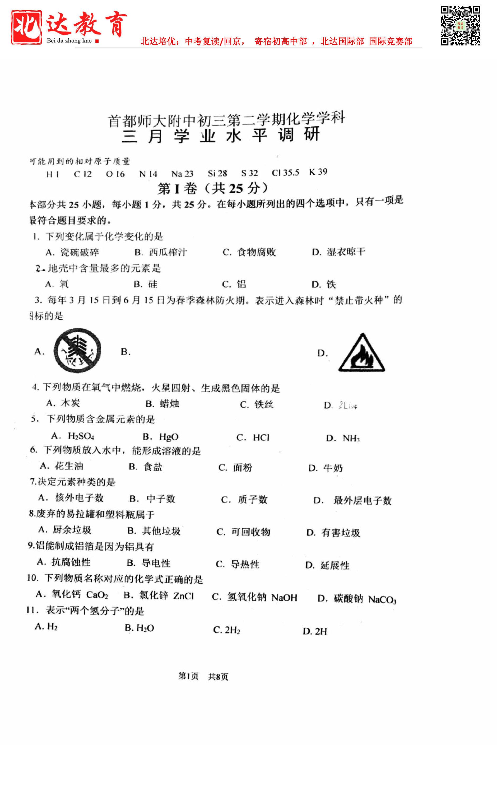 admw360中考网整理了2022-2023学年北京首师大附属中学九年级下化学3月考试卷,分享给大家。需要的同学赶紧下载练习起来吧。