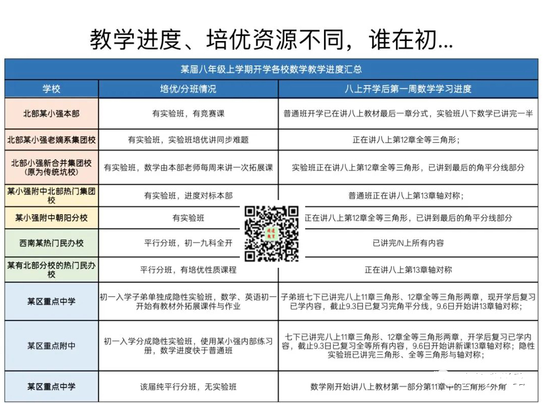admw360中考网分享给大家的是很多人比较关注的,关于多所六小强校和区重点校的分班情况及学习进度!给大家做一个参考。