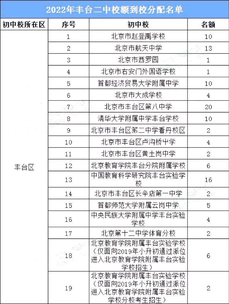 温馨提示:后期考生想通过校额到校途径升入丰台二中,除了满足校额到校条件外,更要多多留意自己的校排名,因为校额到校是通过校内竞争进入优质高中校的。