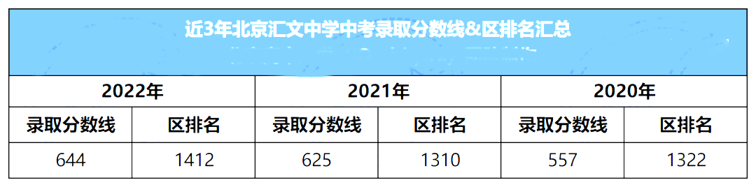 1、2021年起北京中考改革,中考总分变为660分,所以2021-2022年北京汇文中学的中考录取分数线&区排名对20223、2024考生有重要参考意义。