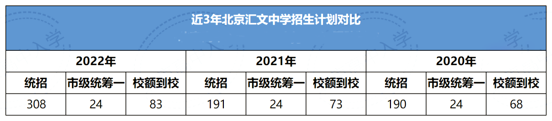 2、由于2022年北京中考人数骤增,大部分学校都进行了扩招,北京汇文中学2022年统招计划相比2021年增加117人。