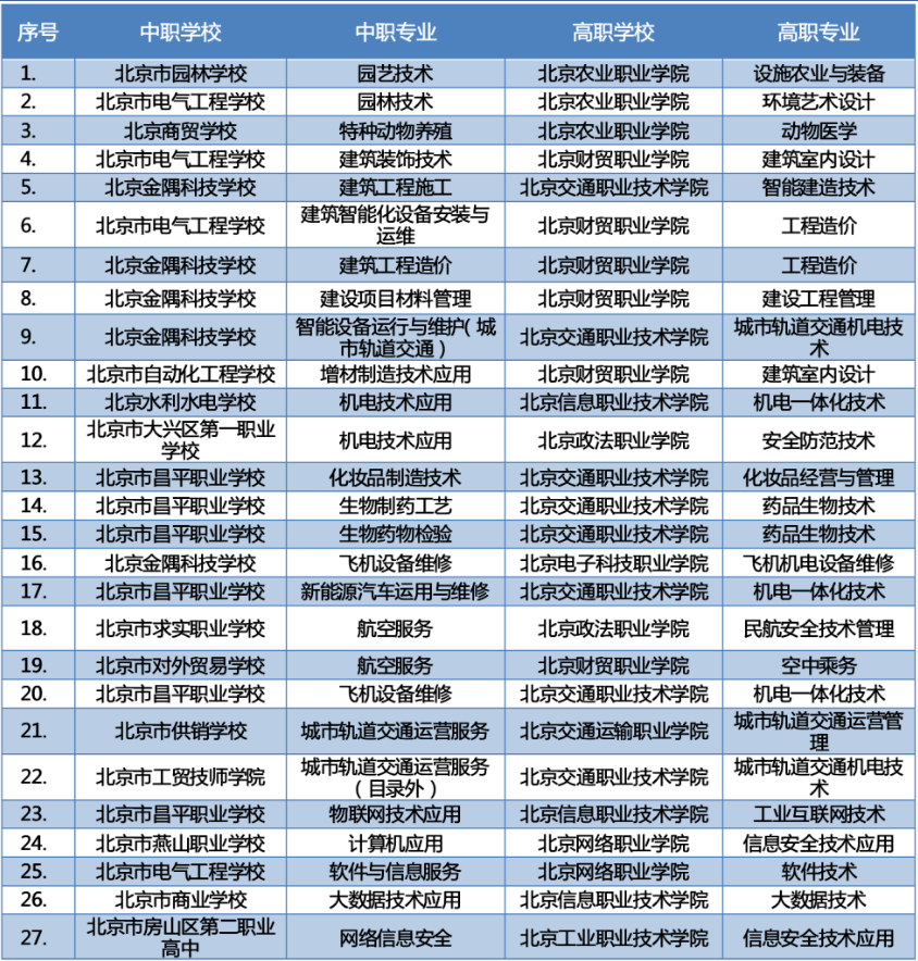 2023北京新增“3+2”中高职衔接办学项目名单发布(66个)