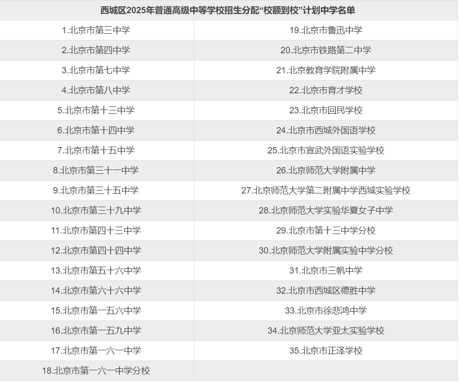 2025年北京部分区普通高级中等学校招生分配“校额到校”计划中学名单已出,详情见下,随admw360中考网了解一下: