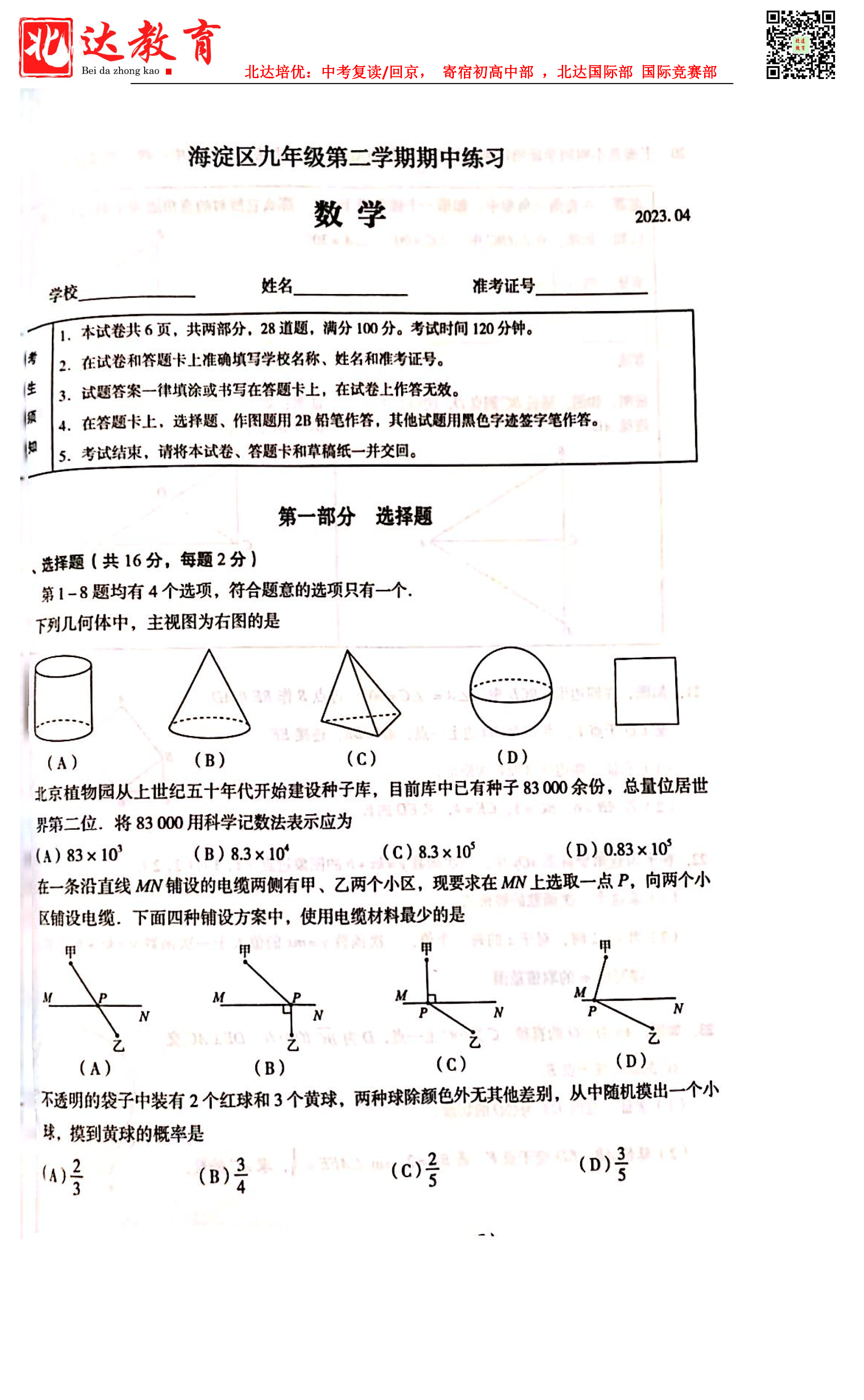 相关阅读:2023北京各区初三一模试题及答案汇总