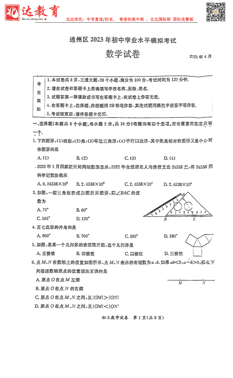 admw360中考网第一时间为大家整理了2023北京通州区初三一模数学试题及答案,分享给大家。