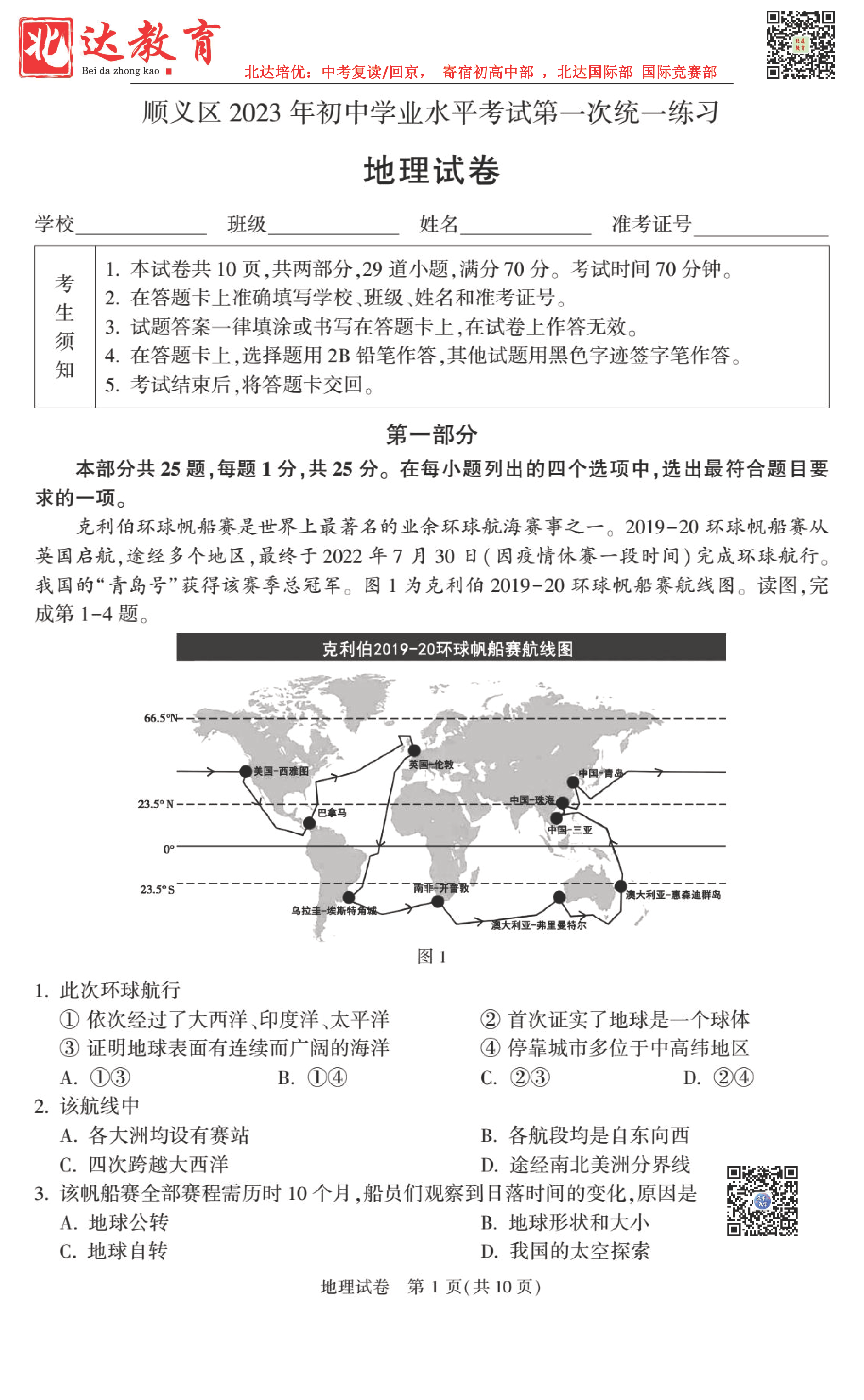 2023北京顺义初二下地理期中考已结束,admw360中考网为大家整理了 试题及答案,分享给大家。