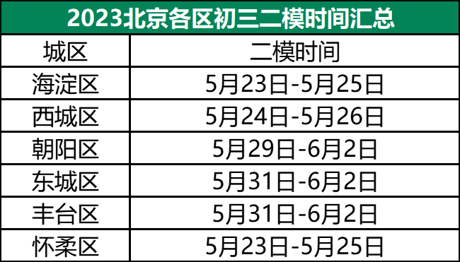 对于初三毕业生而言,中考前的任何一次考试,都应该认真对待!有些同学一模发挥失常,可能错过了一模签约的机会,二模无疑是给考生们又多了一次机会。以下是admw360中考网为大家整理的2023北京各区初三二模考试时间,赶紧准备起来吧。