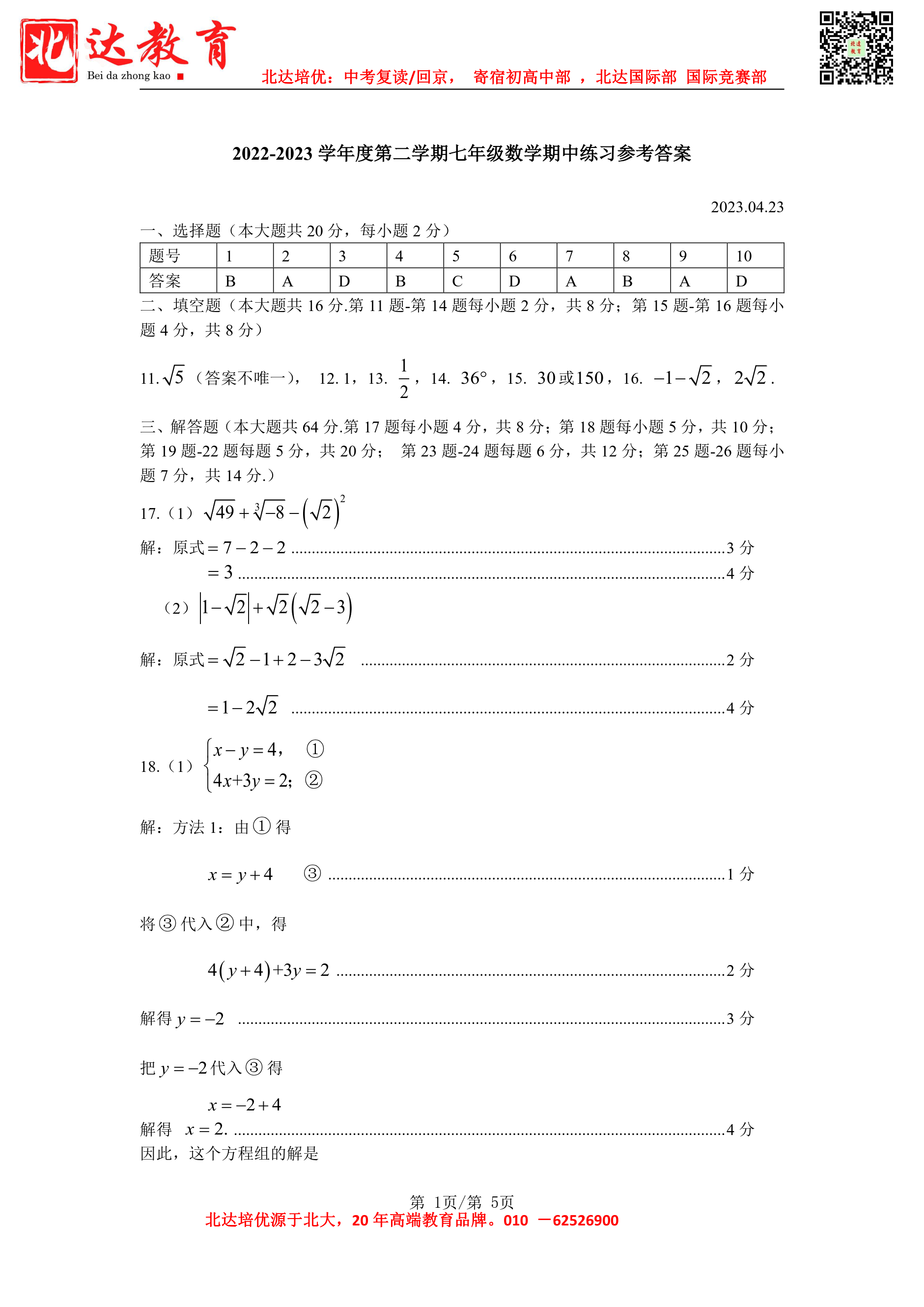 相关阅读:2023北京各区初一(下)期中试题及答案汇总