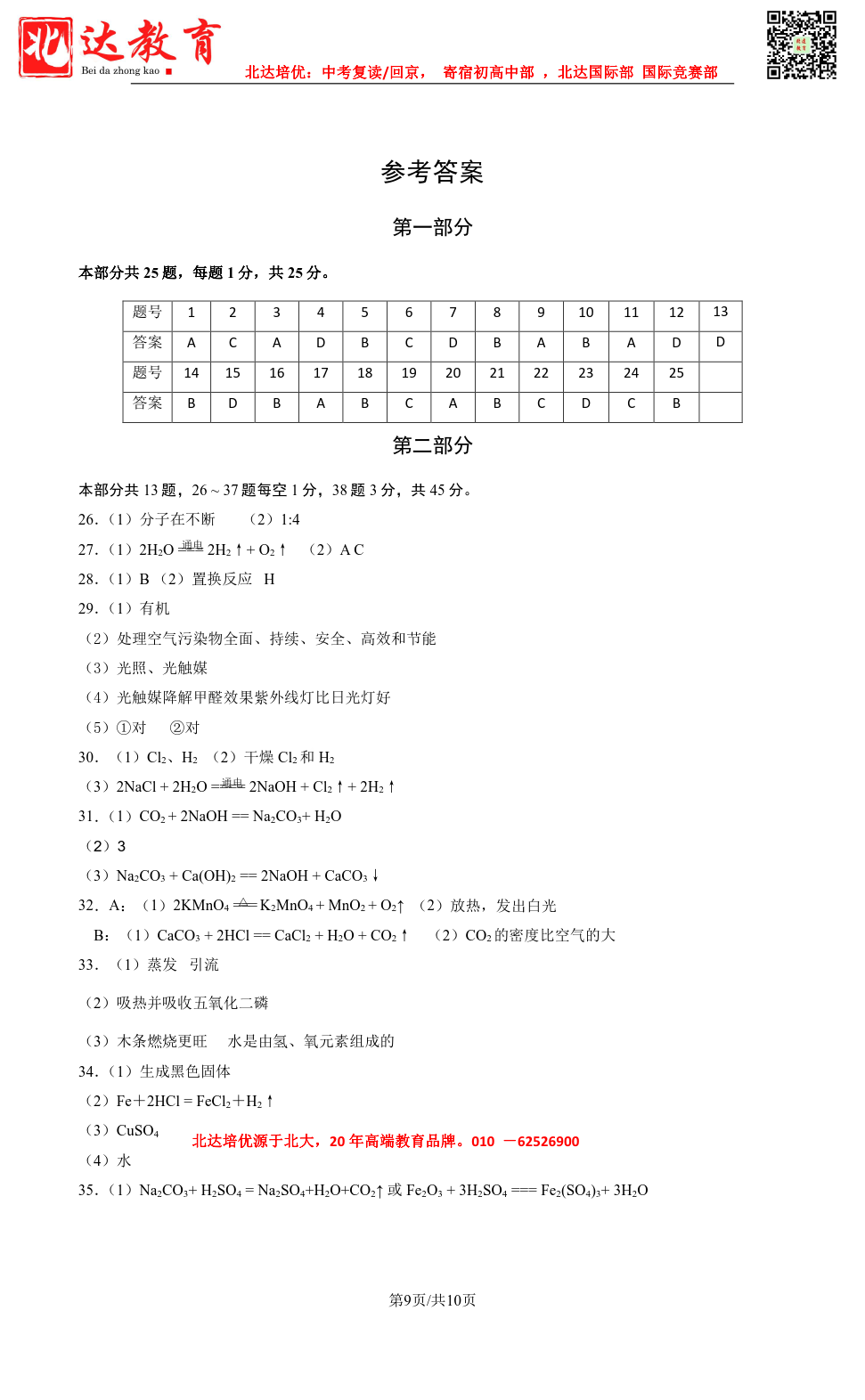 admw360中考网第一时间为大家整理了2023北京东城区初三一模化学试题及答案,分享给大家。
