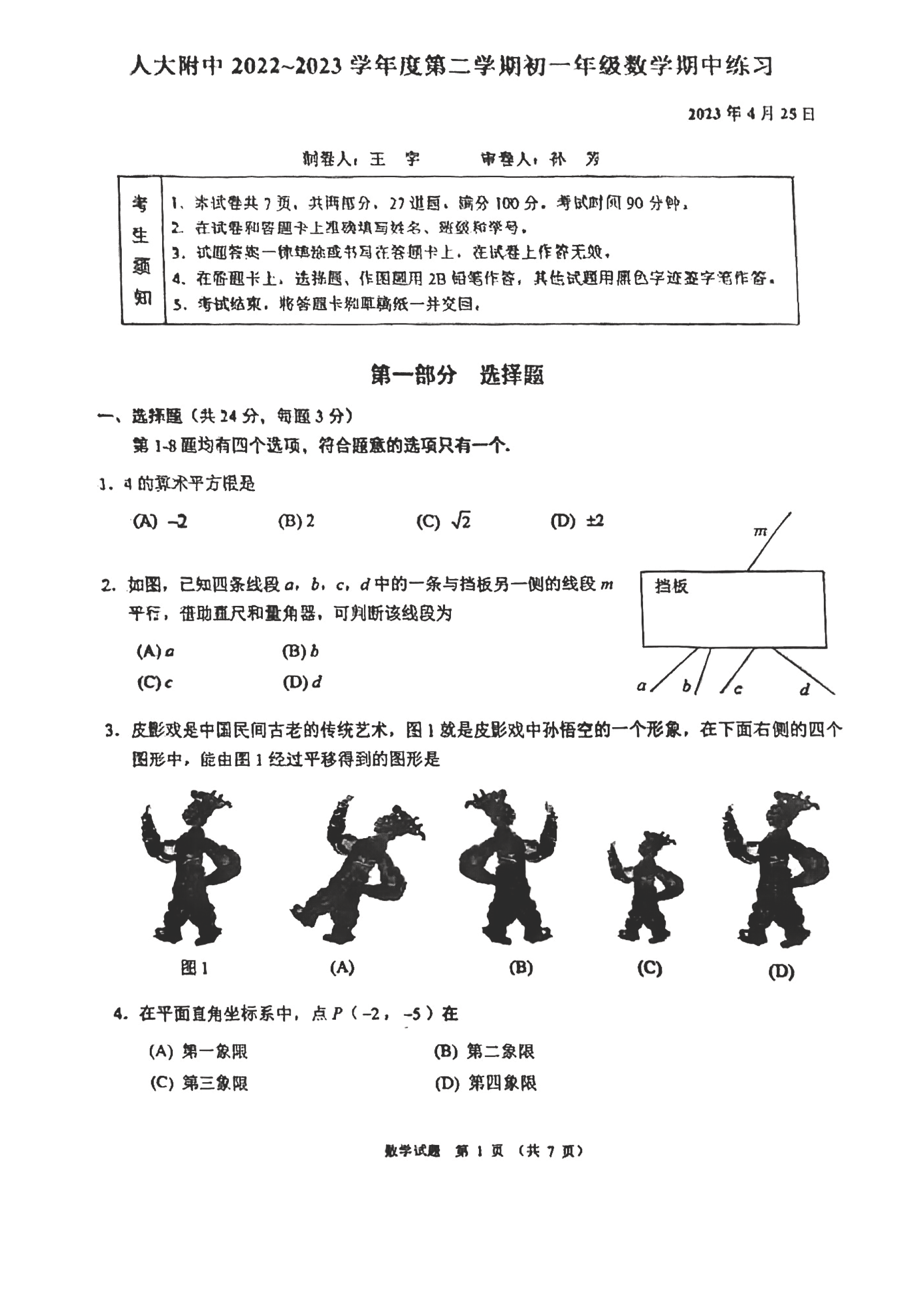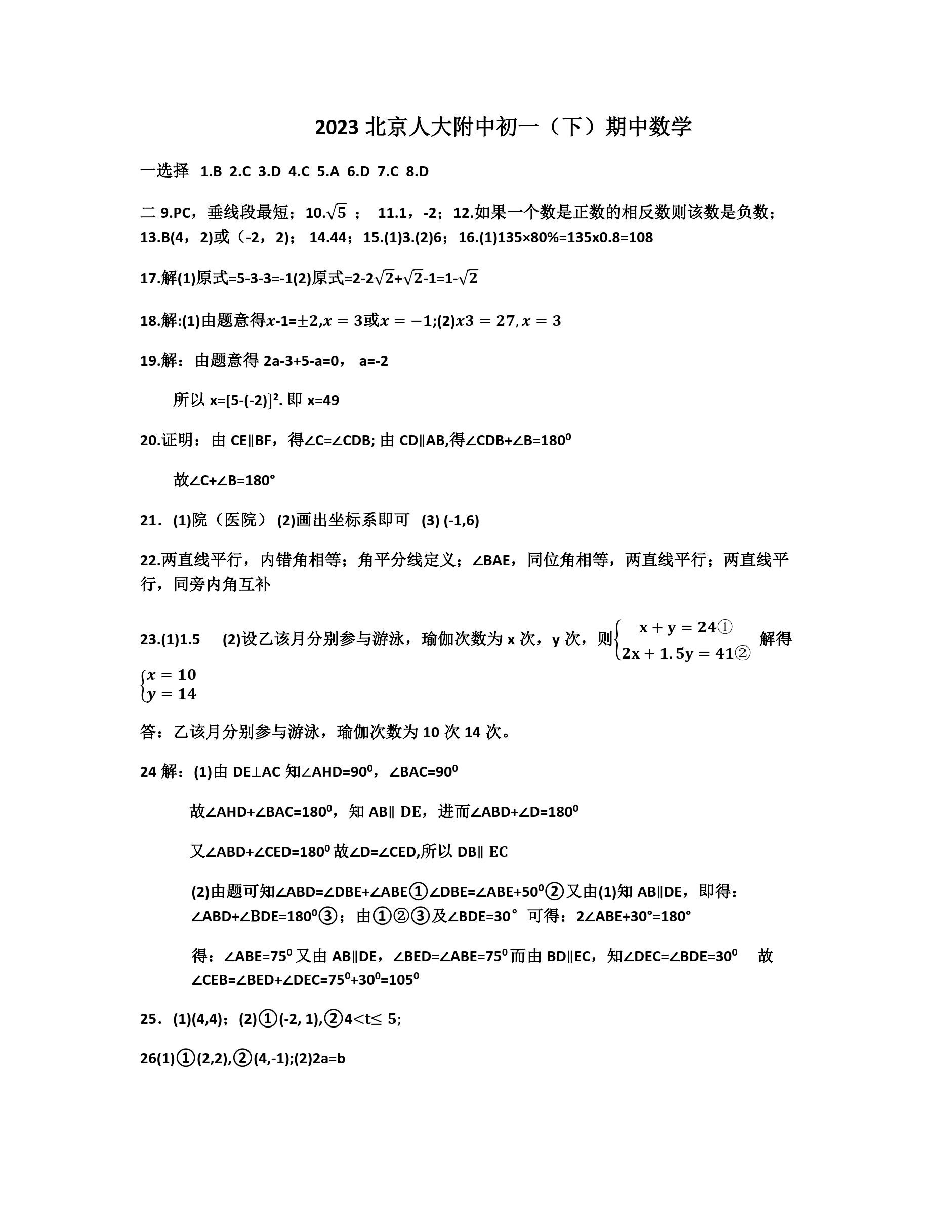 2023学年北京人大附中初一数学期中考考试已结束,admw360中考网为大家整理了试题及答案,分享给大家。