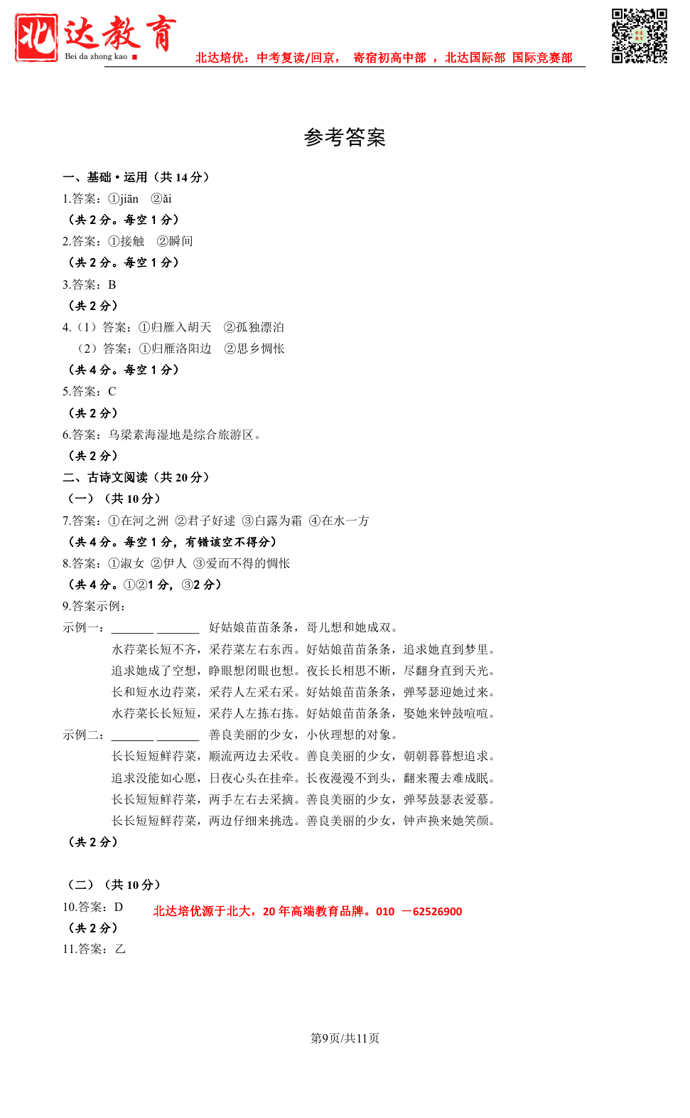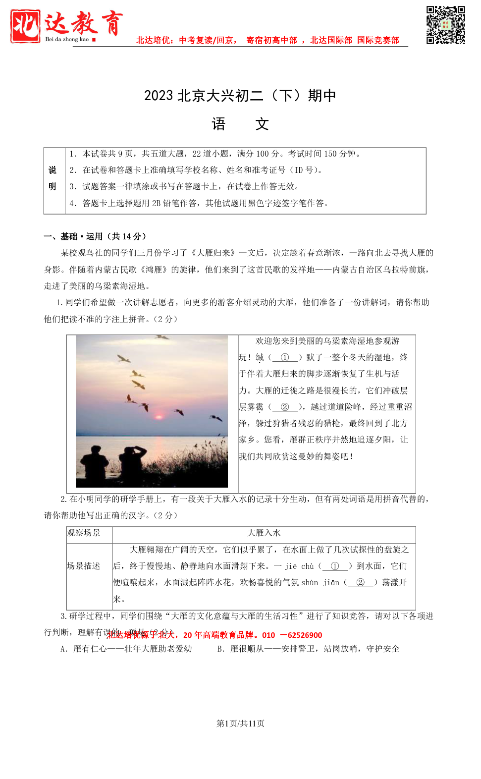 2023北京大兴区初二下语文期中考已结束,admw360中考网为大家整理了 试题及答案,分享给大家。