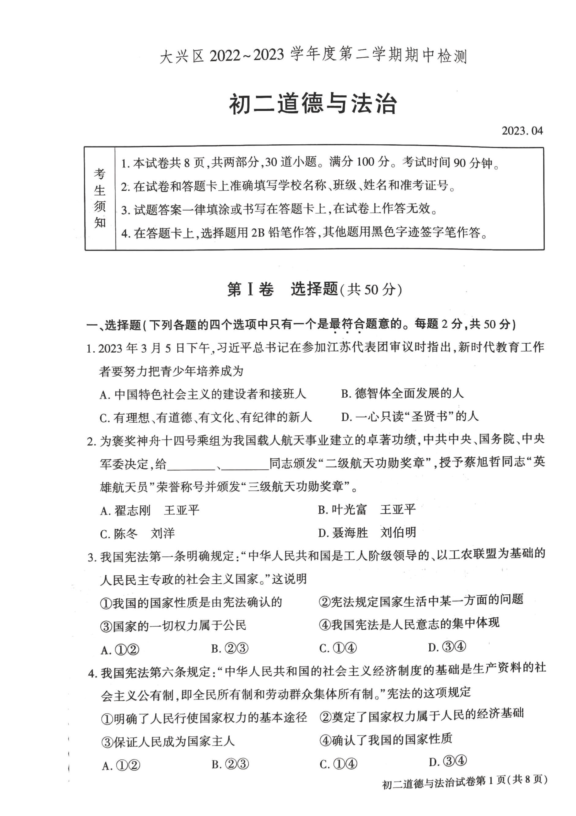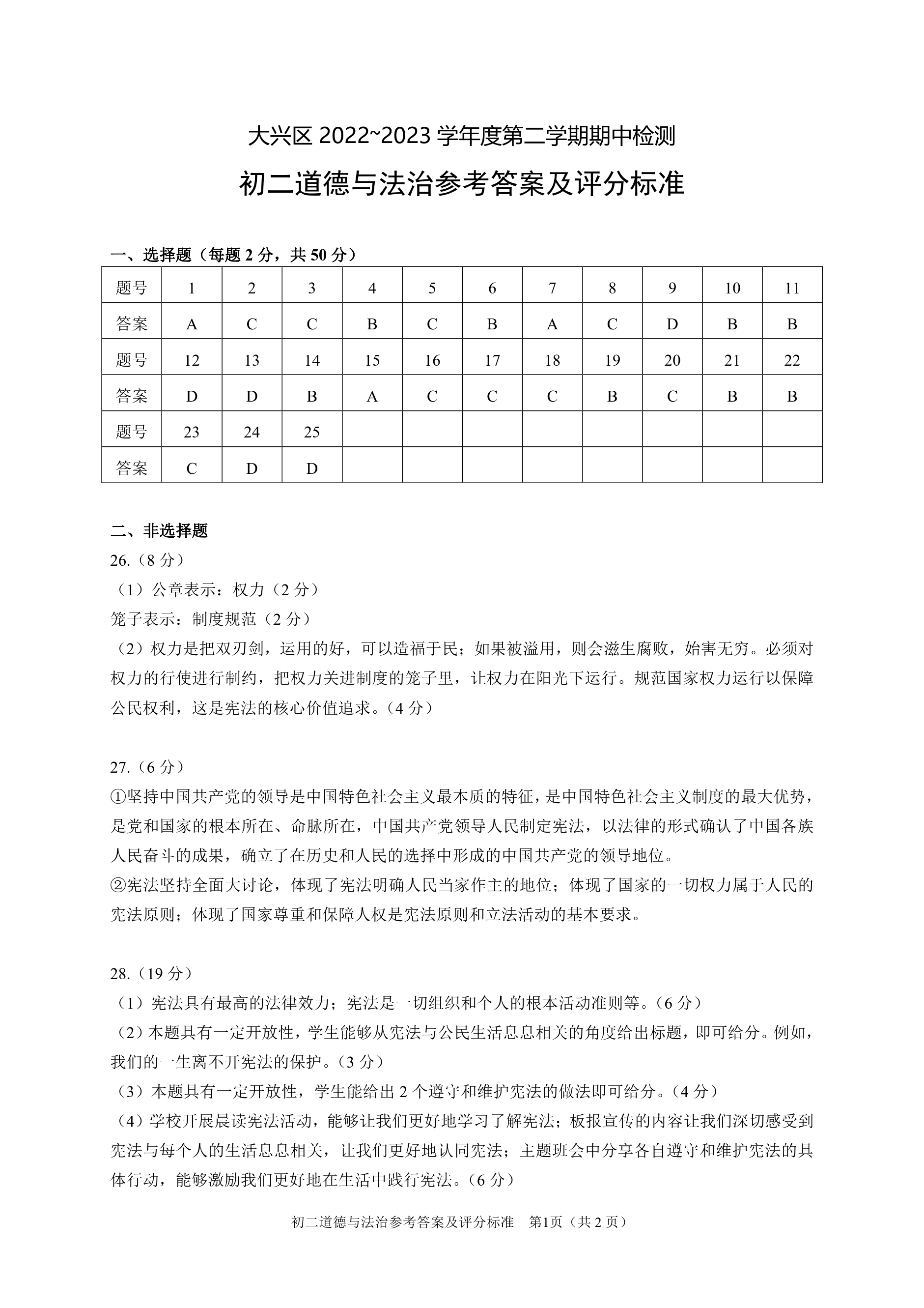 2023北京大兴区初二下道法期中考已结束,admw360中考网为大家整理了 试题及答案,分享给大家。