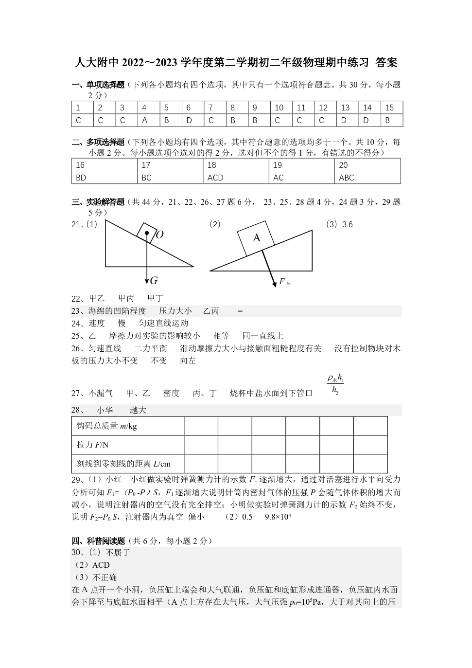 2023北京人大附中初二下物理期中考已结束,admw360中考网为大家整理了 试题及答案,分享给大家。
