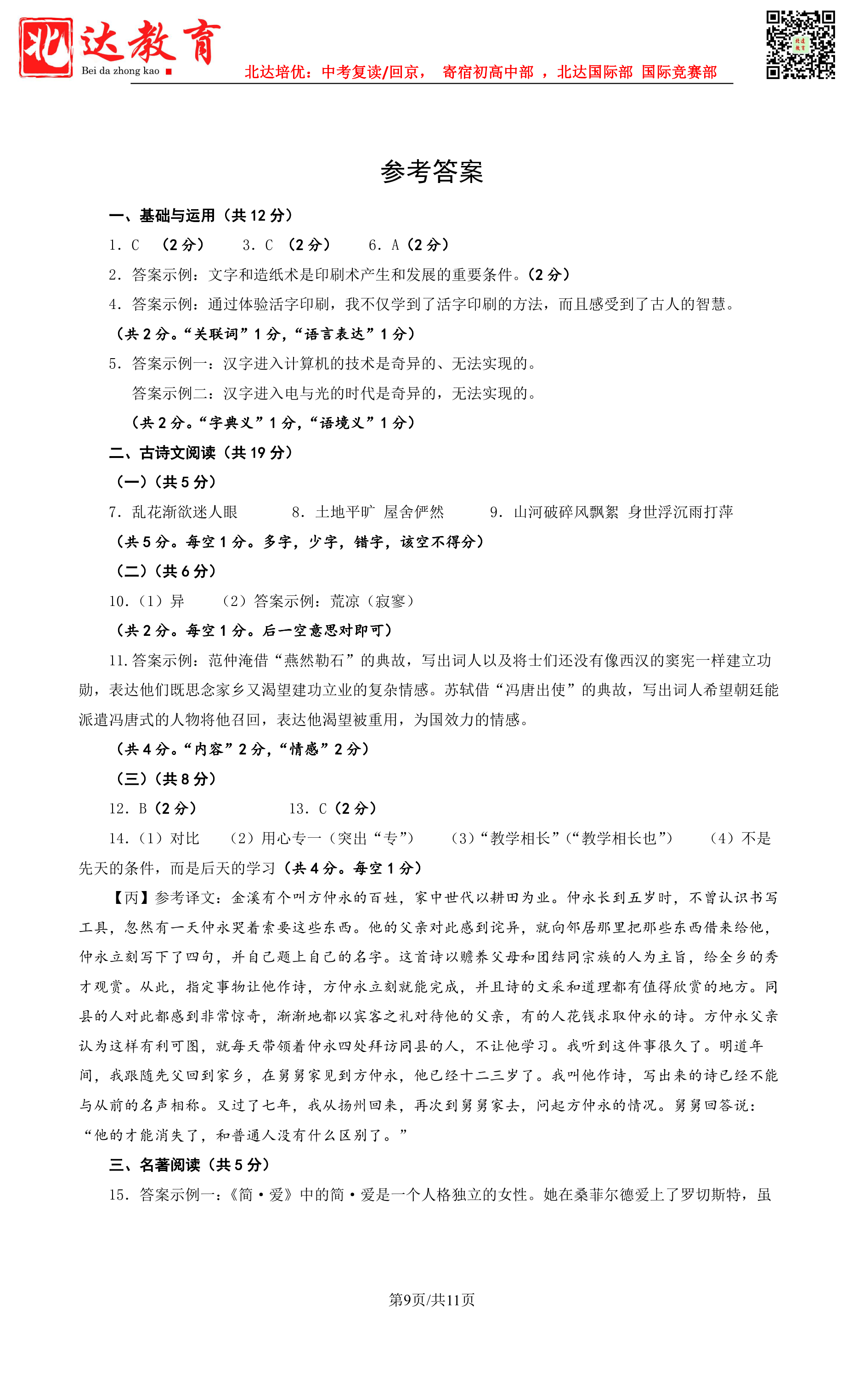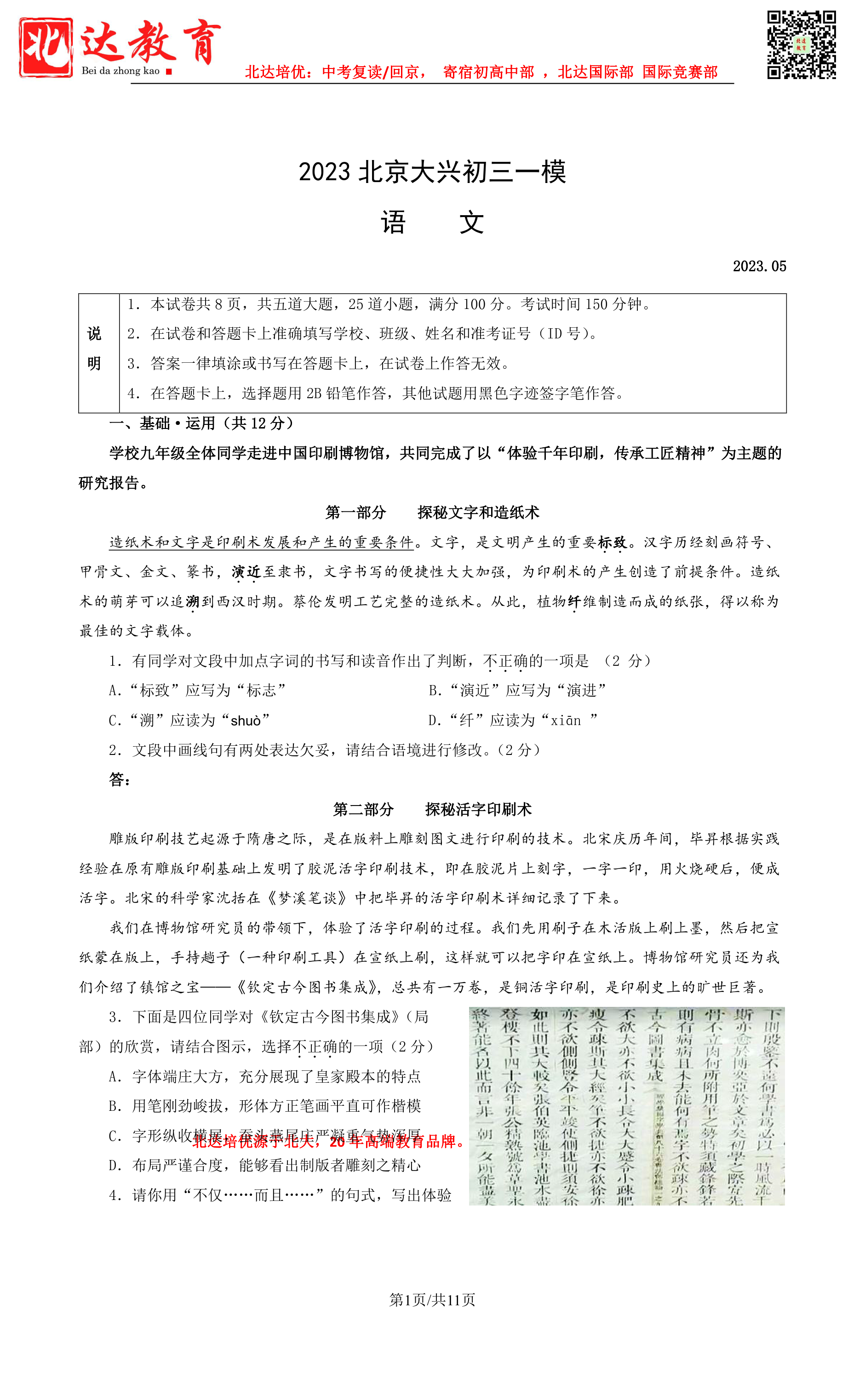 admw360中考网为大家整理了2023北京大兴区初三一模语文试题及答案,分享给大家。