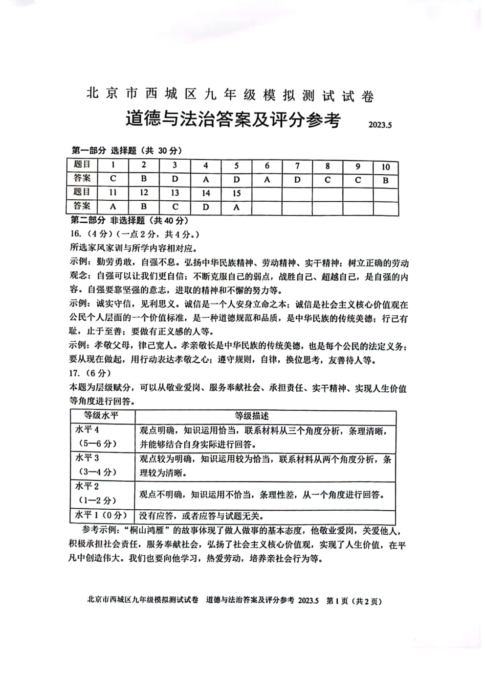 2023北京通州区初三二模正在进行,admw360中考网为大家整理了道法试题及答案,分享给大家。