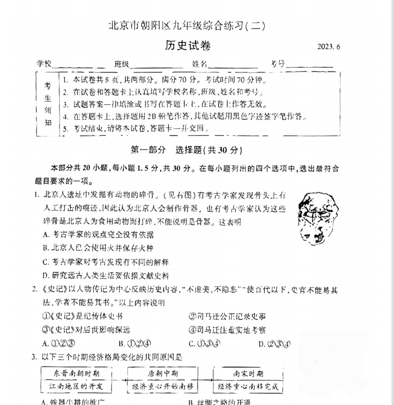 2023北京朝阳区初三二模正在进行,admw360中考网为大家整理了历史试题及答案,分享给大家。