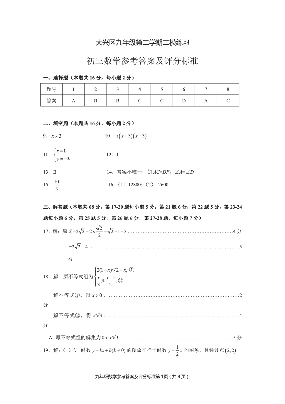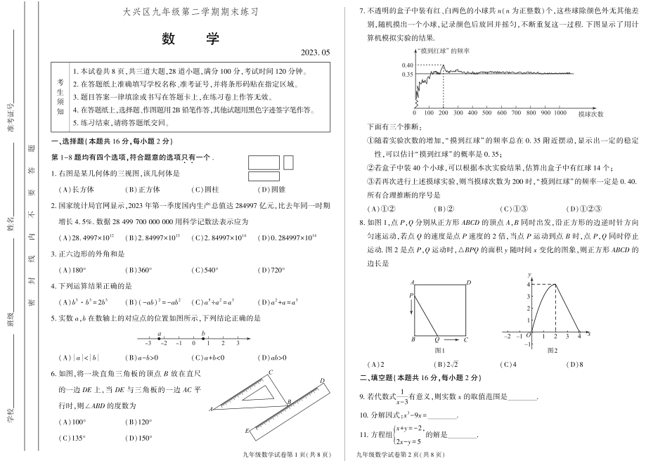 2023北京大兴区初三二模正在进行,admw360中考网为大家整理了数学试题及答案,分享给大家。
