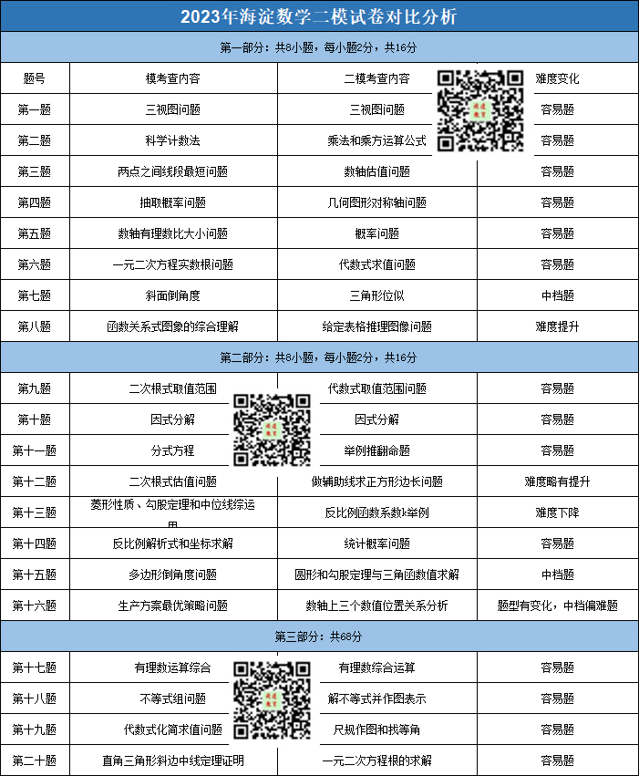 2023北京海淀区初三一模二模都已结束,admw360中考网为大家整理盘点了2023海淀区初三二模和初三一模数学难度对比,一起来看。