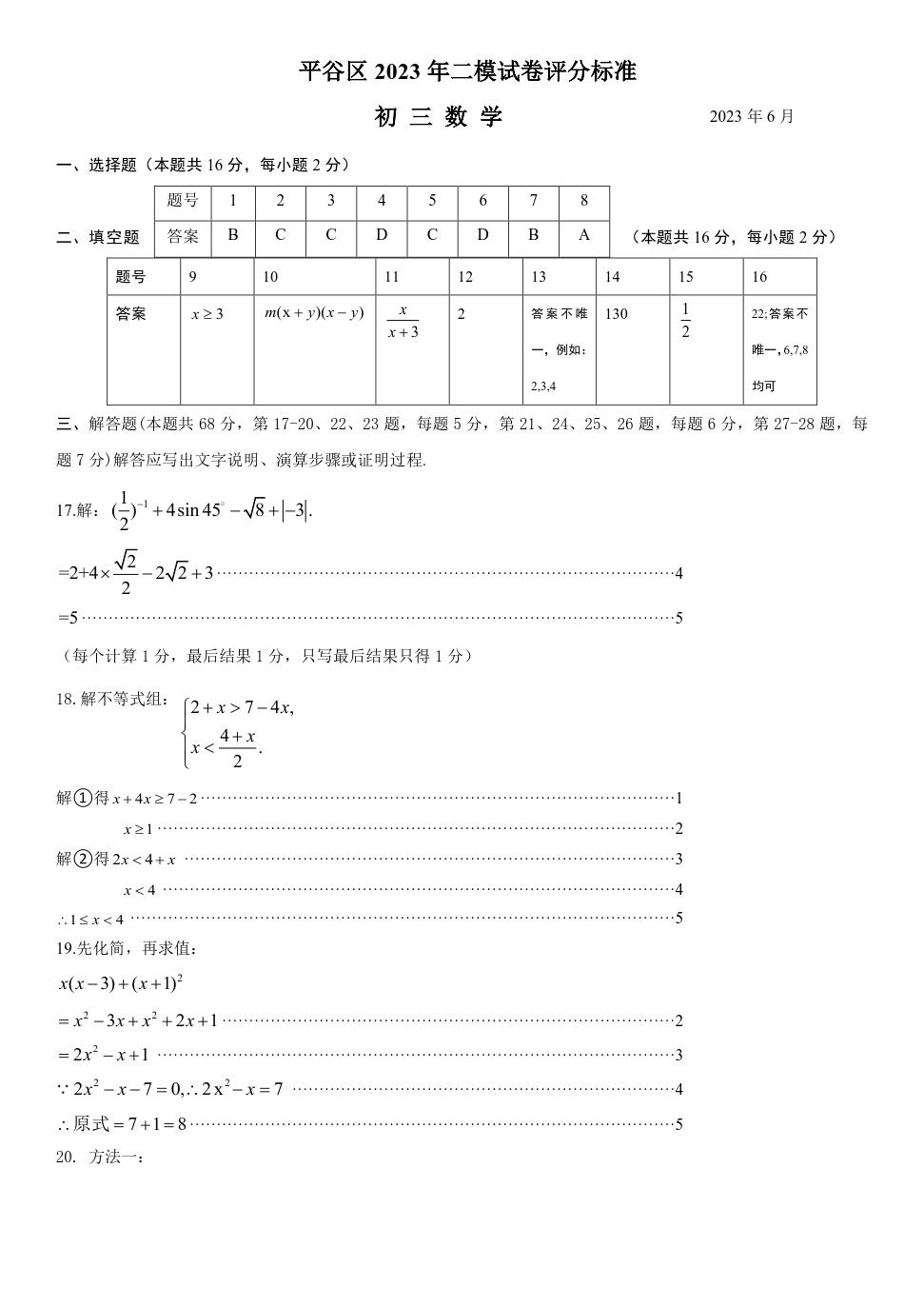 2023北京平谷区初三二模正在进行,admw360中考网为大家整理了数学试题及答案,分享给大家。