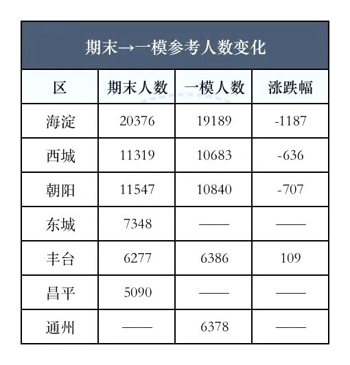 再来跟着太星初升高团队看 期末一模 各区参加考试人数↓