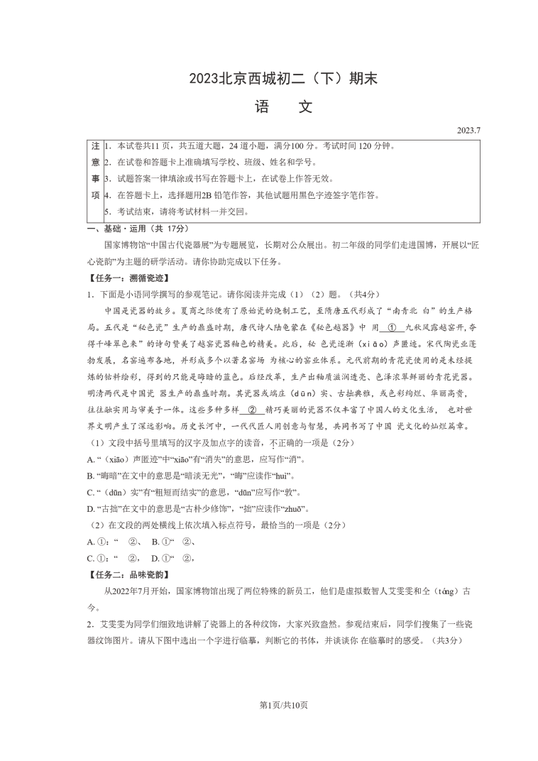 2023北京各区初二期末考已陆续开始,admw360中考网为大家整理了 试题及答案,分享给大家。