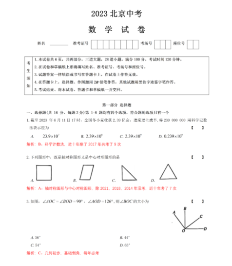 admw360中考网为大家整理累2023北京中考数学真题及答案,需要的同学可自行下载练习。