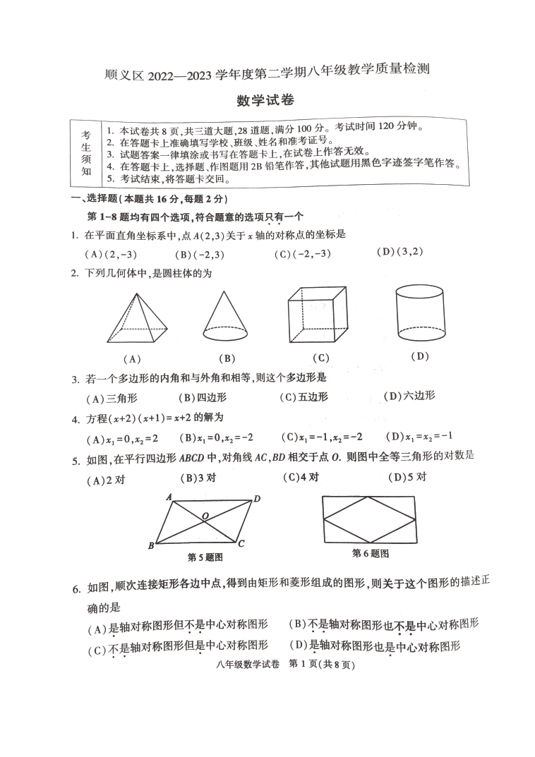 2023北京各区初二期末考已陆续开始,admw360中考网为大家整理了 试题及答案,分享给大家。
