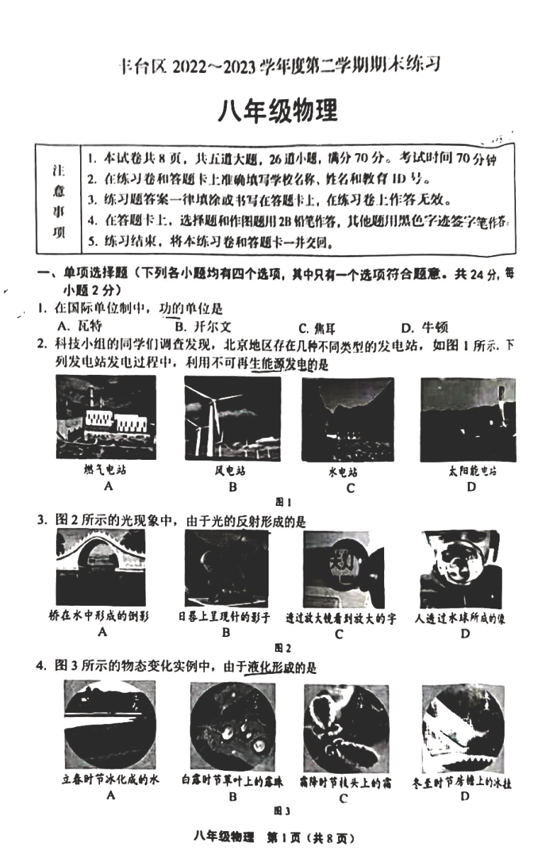 2023北京丰台区初二(下)期末物理试题及答案