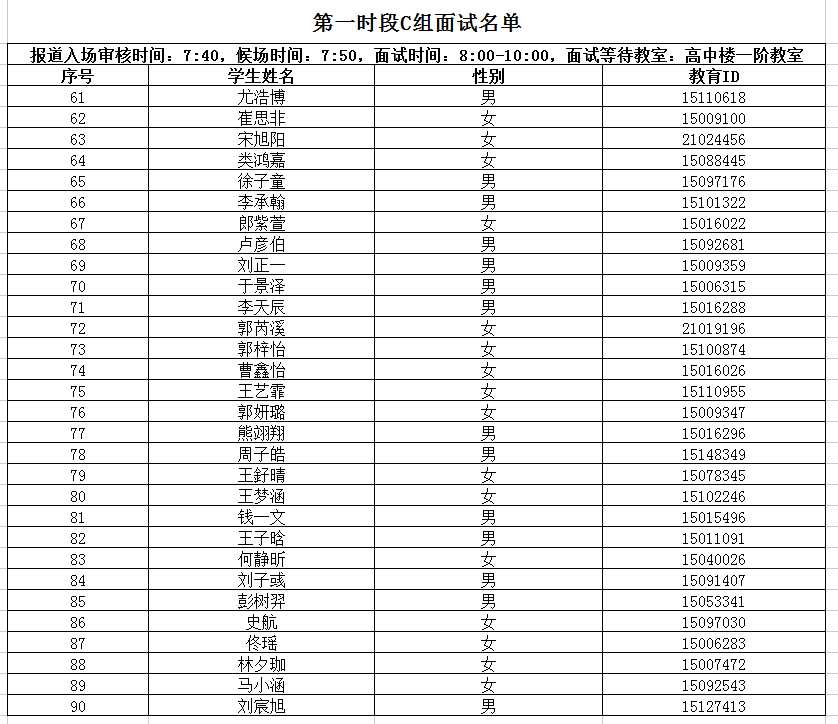4.请家长分时段,按照面试时间接送学生。学校南门停车位有限,开车的家长请自行解决停车问题。