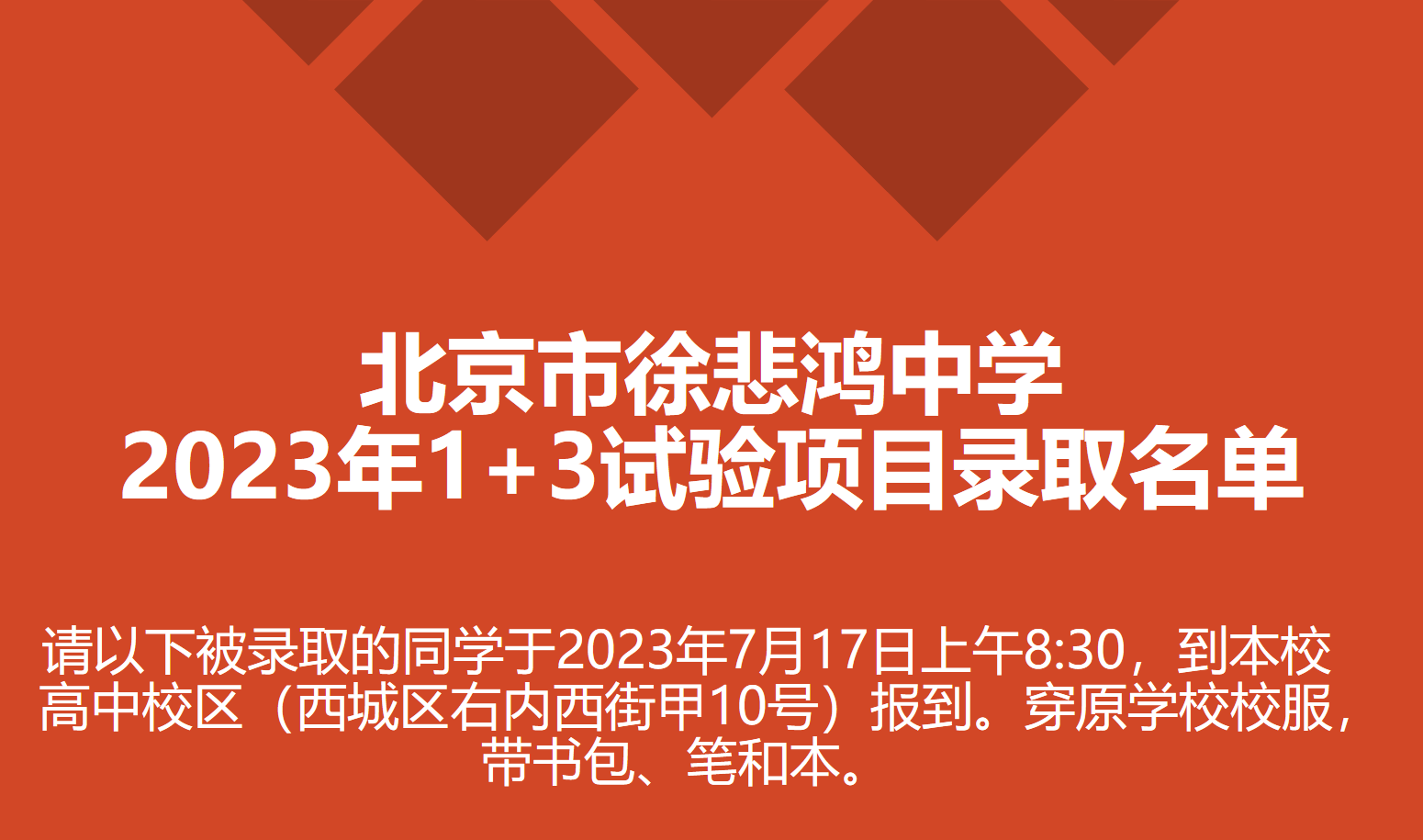 2023北京徐悲鸿中学1+3试验项目录取名单出炉~admw360中考网为大家整理名单详情,分享给大家。