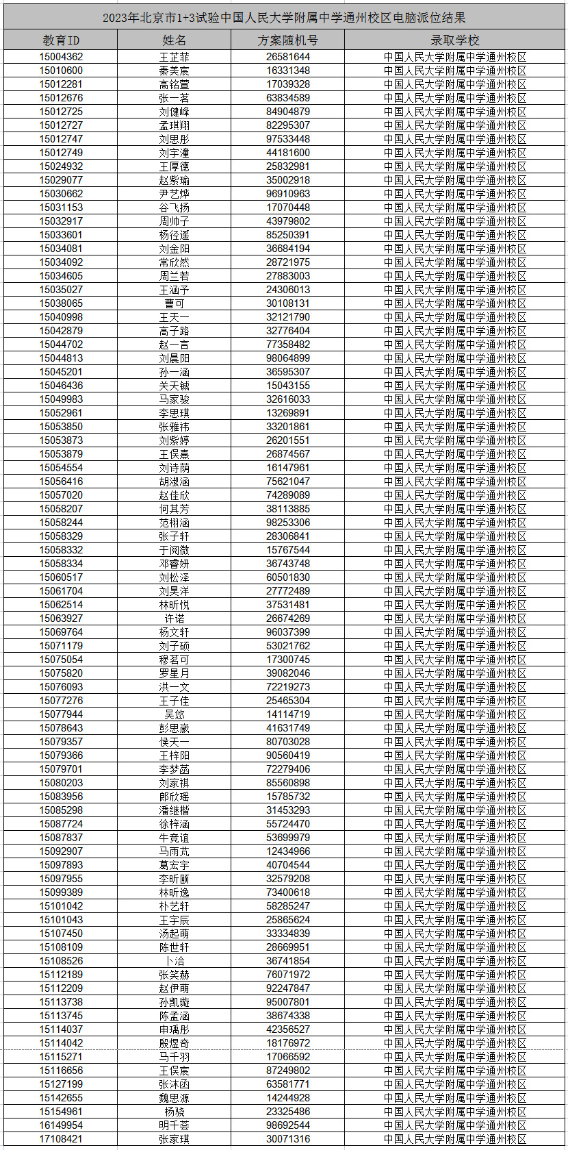 2023年人大附中通州校区1+3项目录取名单来了~admw360中考网为大家整理名单详情,分享给大家。