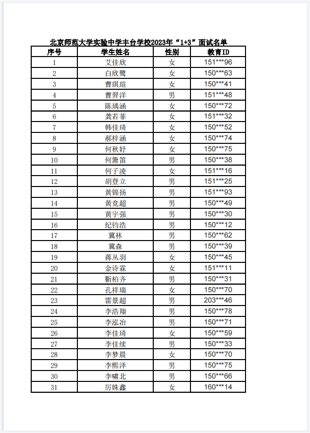 北师大实验中学丰台学校公布2023年1+3面试名单!附报名表!