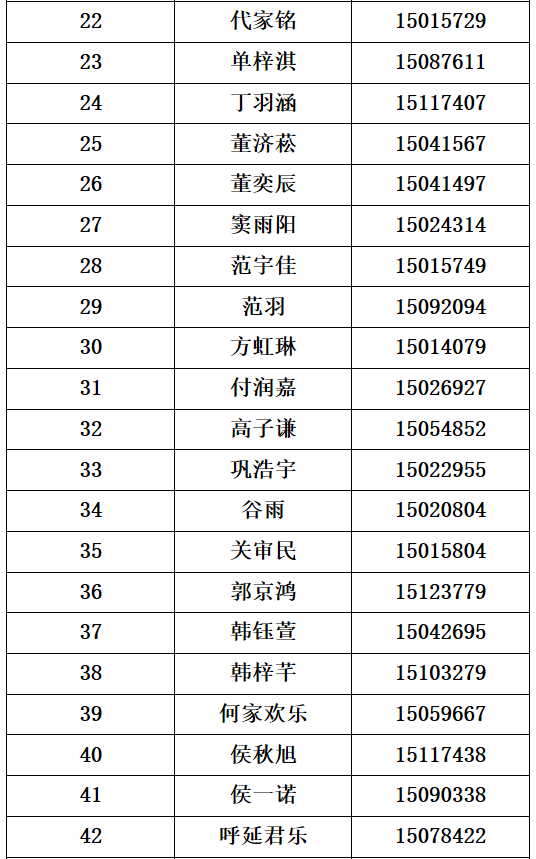 大兴一中招生工作小组结合学生的学习成绩、综合素质评价信息,对参加报名学生进行综合评价,确定以下同学取得我校高中“1+3”贯通培养项目面试资格,现将名单进行公示,请名单中的学生仔细阅读本公告最后面的《大兴一中“1+3”培养项目学生面试通知》,并按通知要求到大兴一中西校区参加面试。