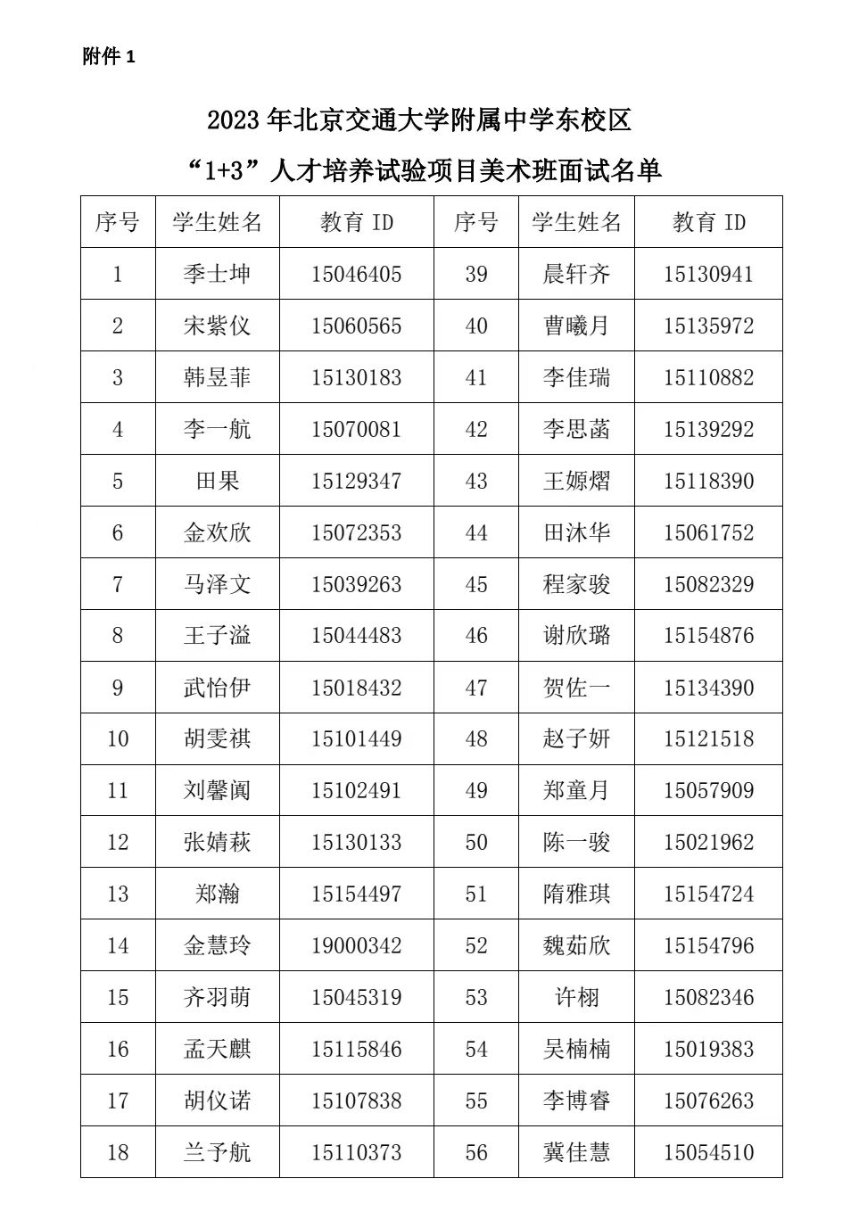 2023交大附中(东校区)1+3项目(工程班+美术班)面试名单发布~admw360中考网为大家整理名单详情,分享给大家。