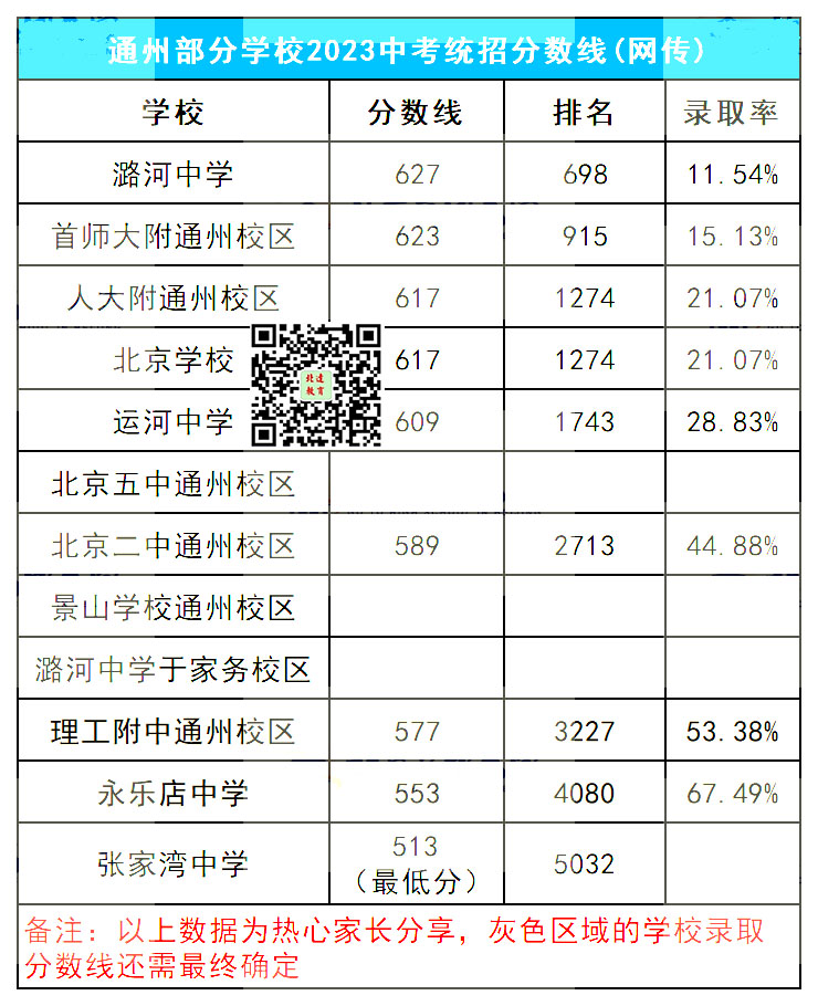 北京通州区2023中考统招录取分数线及区排名出炉,admw360中考网为大家整理了详细表格,分享给大家。